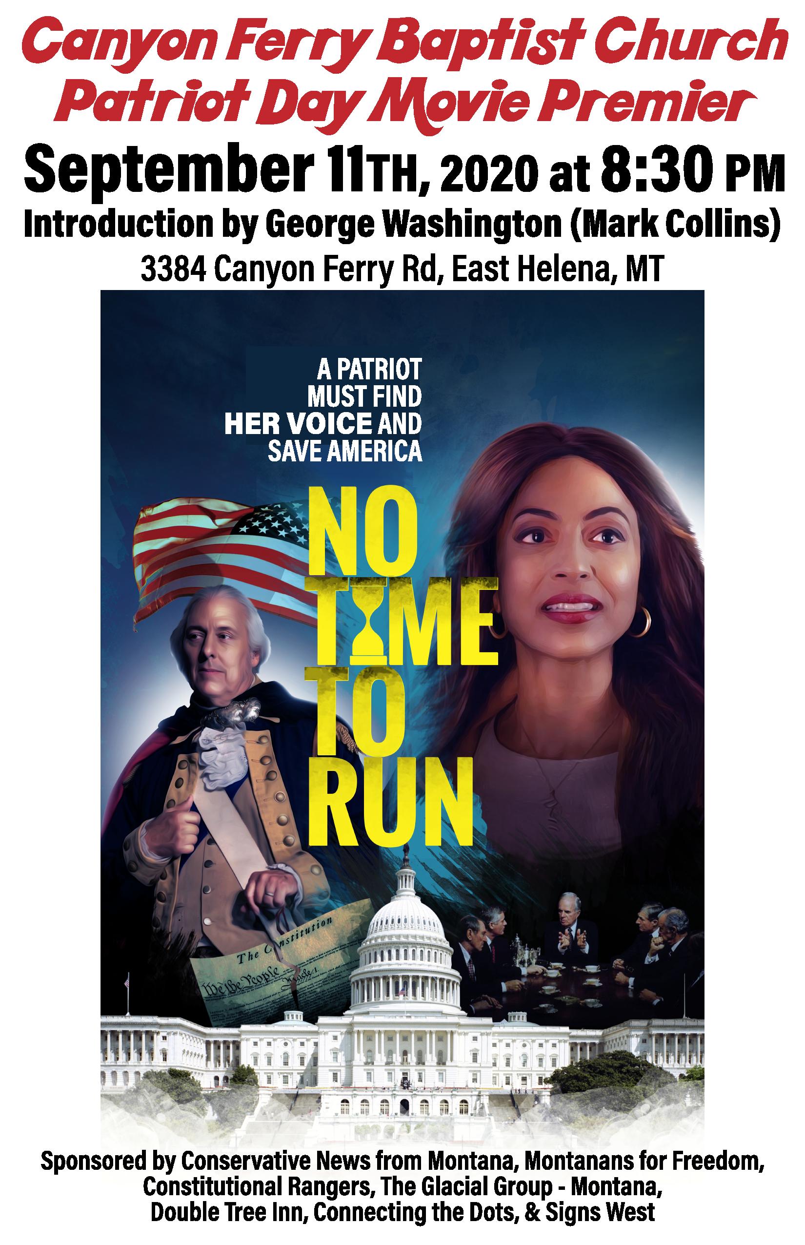 After George Washington's address and the Citizens General Congress on 9/11 at the State Capital (3:00), there will be a family BBQ followed by the premier of the movie, No Time To Run. See banner below.